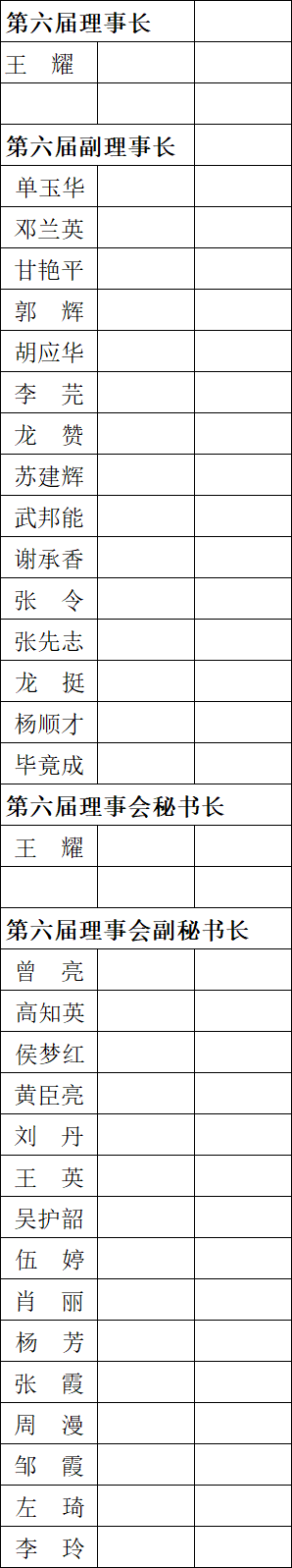 第六届理事会理事长、副理事长、秘书长、副秘书长名单